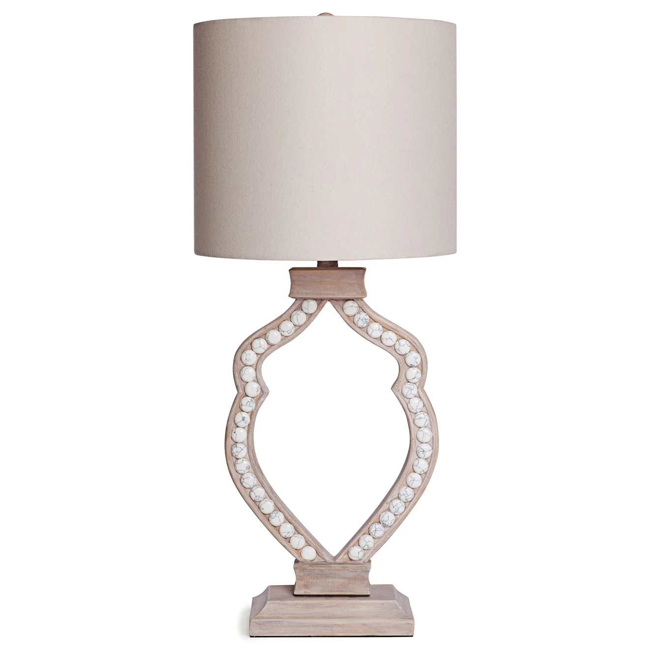 Cream magnesite stones inlayed in hand carved wood make this lamp a total stunner!
